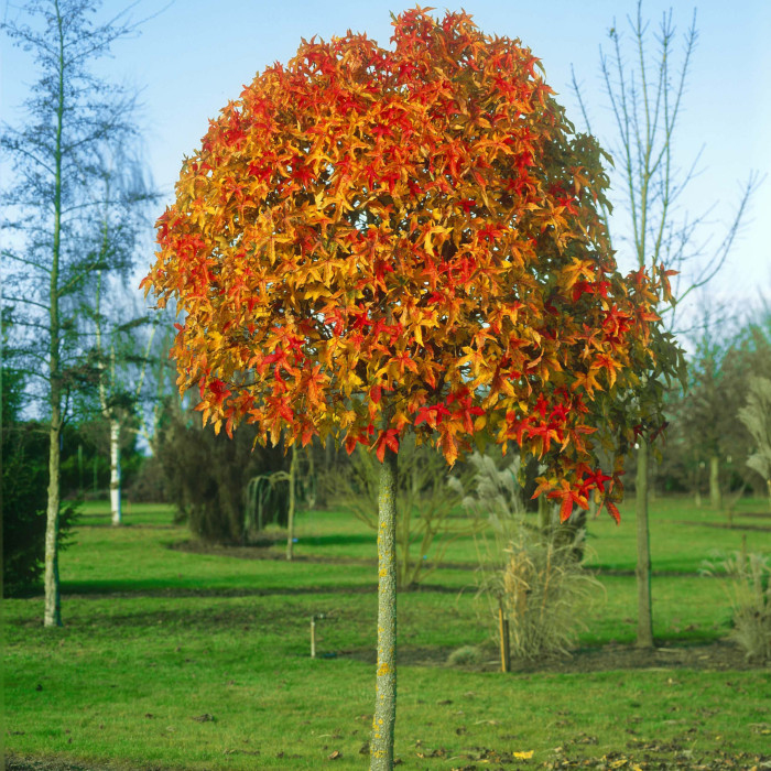 Ambrovník ((Liquidambar styraciflua) je opadavá drevina, v dospelosti statný strom, pochádza z Ameriky. Dorásť môže až do výšky 25m, ale mnohé nové a bežne predávané kultivary sú nižšie a rastú kompaktnejšie. Drevina v dospelosti zaberie šírku až 12m, to ale až po mnohých rokoch. Ambrovníky sú hodnotné a pohľadné stromy, v ideálnych podmienkach sa dožívajú vyše sto rokov. Drevina zaujme už hlboko brázdenou, šedastou kôrou – aj v zime sa tak vystavuje na obdiv. Najviac nápadné sú zvláštne korkové lišty na konárikoch a vetvičkách. Ambrovník kvitne na jar, jej kvety sú žltozelené, menšie, usporiadané do guľovitých súkvetí. Plody sú visiace pichľavé guľočky, trochu podobné plodom pagaštanov. Na drevine upútajú po opade listov, ale tvoria sa až po mnohých rokoch pestovania. Aj vďaka nim je ambrovník v zime zaujímavou drevinou. Ambrovník potrebuje chránené a slnečné miesto – dostatok svetla z každej strany. Na takomto mieste sa na jeseň krásne vyfarbí. Ideálna je preň pôda s kyslou reakciou, priepustná, mierne vlhká a málo zásobená živinami.