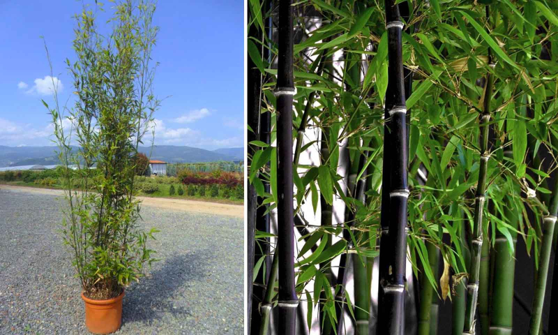 Steblá tohto bambusu sú zo začiatku zelené, neskôr sa vyfarbujú do čierna.