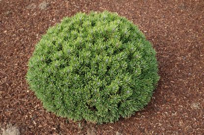 Pinus uncinata ´Hnízdo´( Borovica Pyrenejská )má guľovitý tvar so zelenými ihlami pomalého rastu.