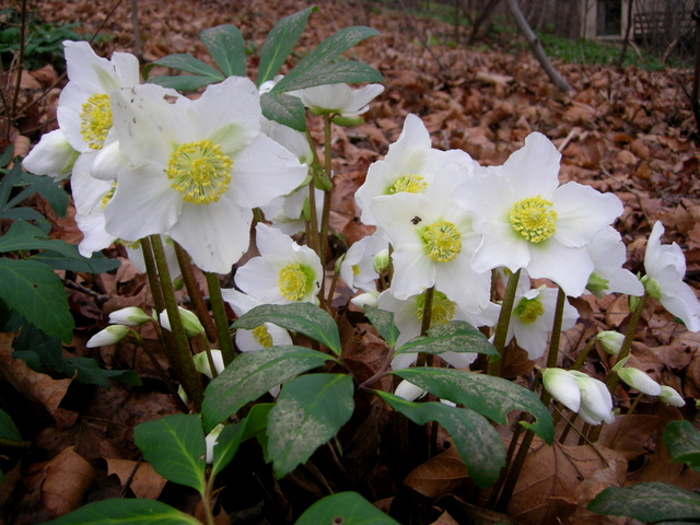 Helleborus niger ’Praecox’ je kompaktná, trsovitá vždyzelená trvalka s dlanitými, kožovitými, tmavozelenými listami.