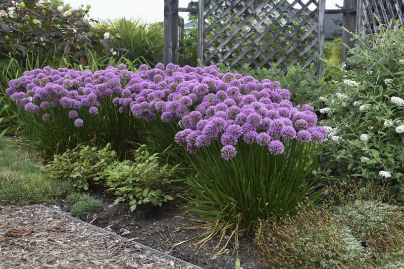 Allium millenium - okrasný cesnak s výškou 35 cm kvitnúci v lete.
