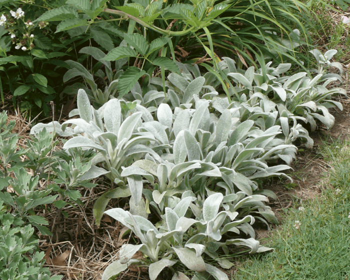 Farba listu: sivá, list plstnaný Typ rastliny: pôdopokryvná trvalka Poznámka: Pre tvar listov a ich jemné biele zamatové ochlpenie túto rastlinku volajú aj „jahňacie uško“.