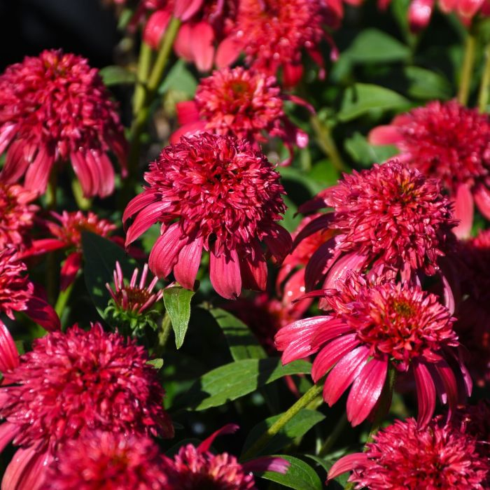 Echinacea Sombrero ´Double Cranberry´ - stredne vysoký kultivar, dorastajúci do výšky približne 60 cm. Farba kvetu je nádherná, sýto ružová. Objavujú sa od júna do septembra.