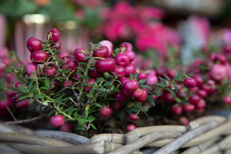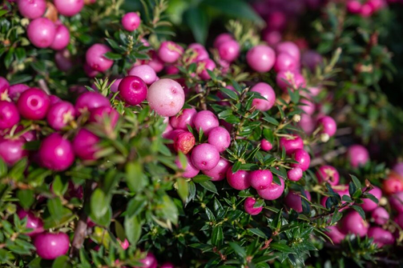 Pernettya - Gaultéria hrotitá vytvára kompaktné, husté kríčky s drobnými, tuhými, lesklými listami, ktoré majú na konci jemnú špičku.