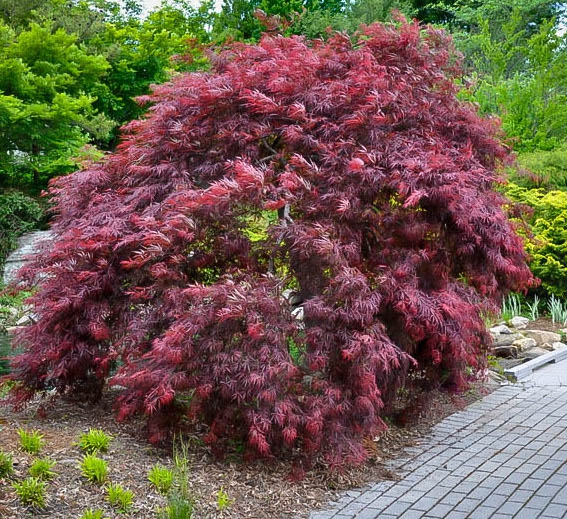 Ťažko uveríte, že holé vetvy kultivaru Inaba Shidare, ktoré vidíte v zime, dokážu v sezóne vytvoriť toľko nádhery. Naozaj výnimočné je olistenie tohto javora, ktorý vyzerá ako našuchorený účes červenovlasej dámy. Spočiatku hnedočervené, hlboko zašpinené listy, sa počas leta môžu zmeniť do sýto vínovej, ktorá na jeseň prechádza do jasnej, žiarivej červenej. Hlavný kmeň rastie vzpriamene, ostatné vetvy rastú do strán a prepožičiavajú mu previsnutý, kaskádovitý vzhľad. Dáva prednosť kyslejšej pôde, vlhkej – nie premokrenej, priepustnej.