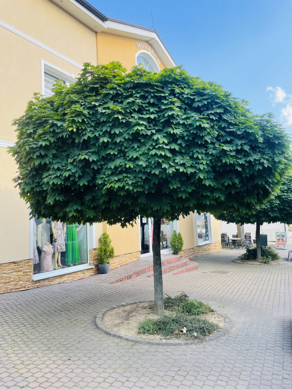 Javor mliečny má veľmi pravidelnú, guľovitou korunou bez nutnosti strihania, rastie pomaly.