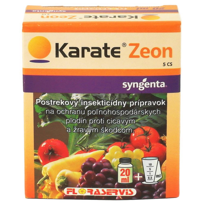 Prípravok Karate Zeon na báze účinnej látky lambda-cyhalothrin, patrí do skupiny syntetických svetlostabilných pyrethroidov. Hmyz usmrcuje ako dotykový a požerový jed. Pôsobí predovšetkým proti žravým škodcom (Lepidoptera, Coleoptera) ako kontaktný jed. Ďalej má veľmi dobrý účinok na cicavý hmyz (Homoptera). Je svetlostabilný, čo umožňuje jeho použitie aj proti postupne nastupujúcim škodcom. Dráždivé účinky vyvolávajú nekľud u hmyzu a nútia aj skryte žijúce druhy ku kontaktu s účinnou látkou.