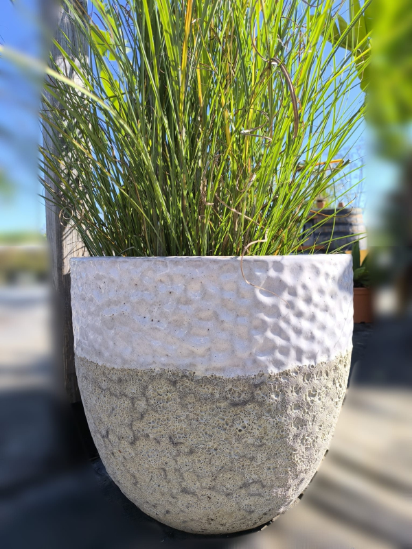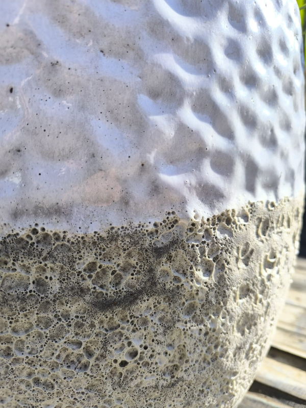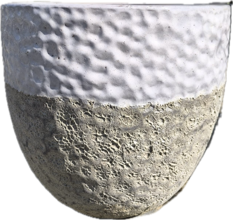 Moderný dvojfarebný keramický kvetináč s kombináciou bielej glazúry a prírodného štruktúrovaného povrchu. Vďaka svojmu štýlovému vzhľadu sa hodí do interiéru aj na terasu a je ideálny na pestovanie kvetov, tráv či menších okrasných drevín.