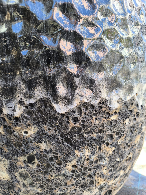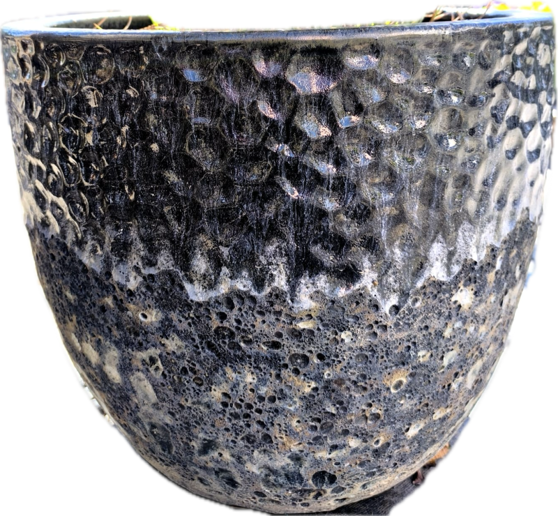 Moderný dvojfarebný keramický kvetináč s kombináciou čiernej glazúry a prírodného štruktúrovaného povrchu.