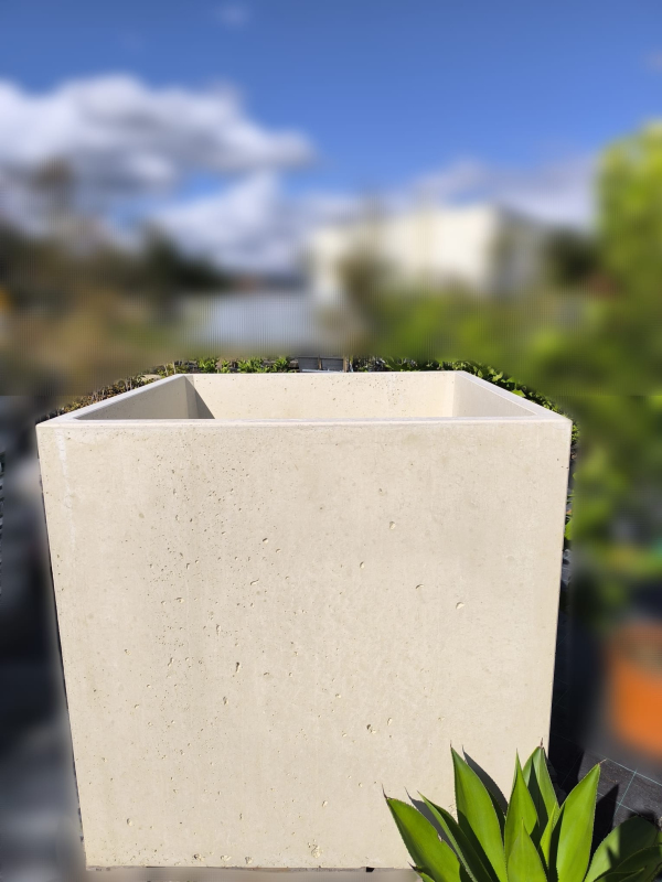 Moderný hranatý kvetináč značky Terratico je vyrobený inovatívnou technológiou, ktorá kombinuje recyklovaný plastový odpad s betónom. Výsledný materiál je ľahší, trvácny, odolný voči mrazu i UV žiareniu a zároveň šetrí životné prostredie. Skvele sa hodí do záhrad, na terasy či reprezentatívne exteriéry aj interiéry.
