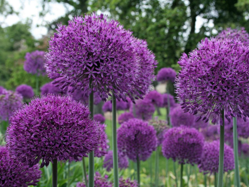 Osvedčený kultivar tmavofialového okrasného cesnaku s výškou 60 až 80 cm.