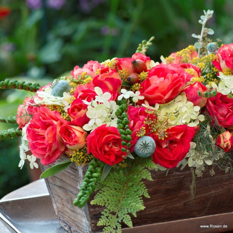 Mnohokvetá nostalgická ruža ´GEBRÜDER GRIMM´ je zaujímavá svojim farebným efektom. Sfarbenie spodnej strany lupeňov v oranžových tónoch harmonicky kontrastuje s krásnou jasne červenou farbou na ich povrchu. Kúzlo rozprávkových farebných kvetov dokonale dopĺňajú lesklé zelené listy. Rastie vzpriamene do výšky približne 70 cm.