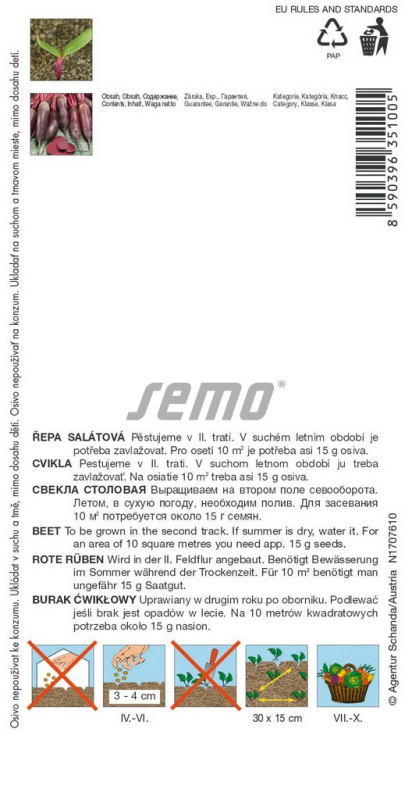 Výnosná poloneskorá až neskorá odroda červenej šalátovej repy s valcovitým tvarom buľvy typu Renova.