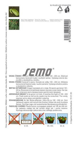 Výrobca: SemoMetro je botanicky Vigna čínska (V. sinensis, syn. V. unguiculata subsp. sesquipedalis). Lodyha je popínavá. Struky sú tenké, dlhé 40 – 100 cm (odtiaľ aj archaický názov dlhohatec čínsky), rovné až šabľovito prehnuté, na povrchu hladké, tmavo zelené. Semená sú obličkovité, biela. Semená sa vysievajú v prvej polovici mája do sponu 40 × 40 cm po dvoch rastlinách, k vhodnej opore. Je možné aj predpestovať sadenice z aprílového výsevu. V priebehu vegetácie potom musíme zaistiť pravidelné kyprenie a odburiňovanie pôdy. Okrem vyšších nárokov na teplo, vyžaduje vigna aj dostatok vlahy. Na pôdu nie je príliš náročná. Podmienkou je ale jej dobrá priepustnosť a skôr nižší obsah organických látok, pretože v opačnom prípade dochádza k nadmernému rastu zelenej hmoty. Vhodné je použitie čerstvých strukov na varenie aj sterilizácia. Taliani túto odrodu niekedy označujú ako špagetovú, pre dĺžku a štíhlosť strukov.