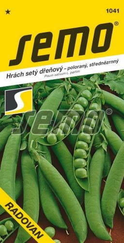 Výrobca: SemoHrach siaty Radovan je poloskorá odroda hrachu záhradného. Rastliny dorastajú do 60 – 80 cm výšky, majú pevnú rozvetvenú lodyhu so stredne veľkým listom a menším palistom. Struky sú 7 - 8 cm dlhé, ostro ukončené, so 7 - 8 stredne veľkými, tmavo zelenými zrnami, HTS 190 g. Odroda je vhodná pre veľkovýrobu a priemyselné spracovanie, je tiež vhodná pre drobných pestovateľov. Môže byť náhradou poloranej odrody David. Táto odroda hrachu je odolná proti poliehaniu.