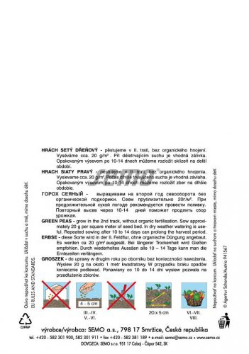 Výrobca: SemoSkorý, veľkozrnný, s tmavo zelenými strukami, ktoré sú 8-10 cm dlhé a obsahujú 7-9 zŕn. Vegetačná doba je 60 dní. Odolný k Fusariovému vädnutiu.