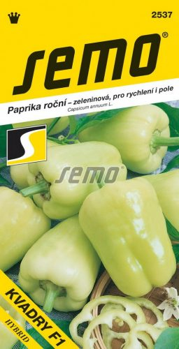 Výrobca: SemoPaprika ročná Kvadry F1 je poľná kvadratická paprika stredného až vyššieho vzrastu. Stredne veľké, ale ťažké plody sú v technickej zrelosti smotanové av botanickej svetle červené. Odporúčame ich žať v technickej zrelosti, kedy veľmi dobre znáša krátkodobé skladovanie aj prepravu. Je veľmi vhodná aj na pestovanie vo fóliovníkoch, kde poskytuje vysoké výnosy.