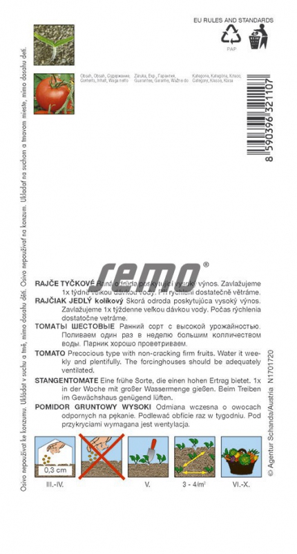 Výrobca: SemoPoloraný hybrid s dlhodobo skladovateľnými plodmi. Rastliny stredného vzrastu poskytujú, veľkosťou i tvarom, atraktívne vyrovnané, nepraskavé plody s hmotnosťou 100 – 120 g. Hybrid vhodný do nevykurovaných rýchliarní aj na pole.