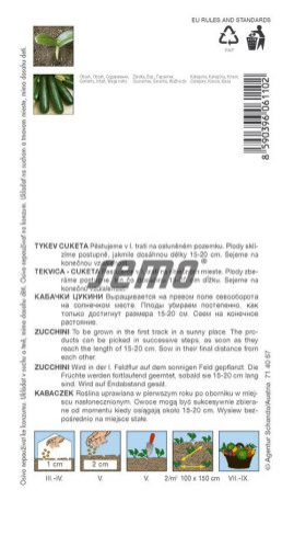 Výrobca: SemoVýnosný raný hybrid cukety s pravidelnými, rovnými a hladkými plodmi tmavo zelenej farby. Rastlina je kríčkovitého vzrastu, kompaktná. Vyžaduje pravidelnú úrodu mladých plodov. Odporúča sa výsev v spone 120 – 150×80 cm. Vegetačná doba je do prvého zberu 55 - 60 dní. Zo 100 m² je možné zožať 500 – 700 kg podľa spôsobu zberu.
