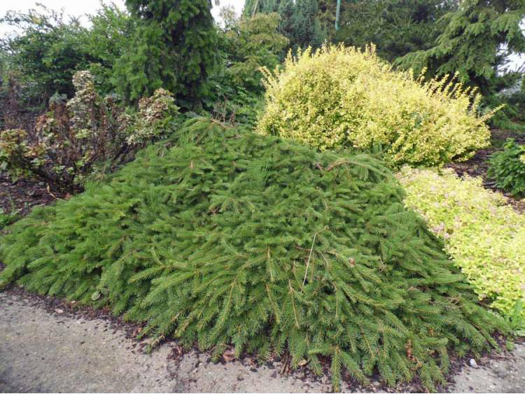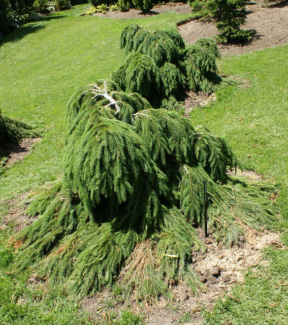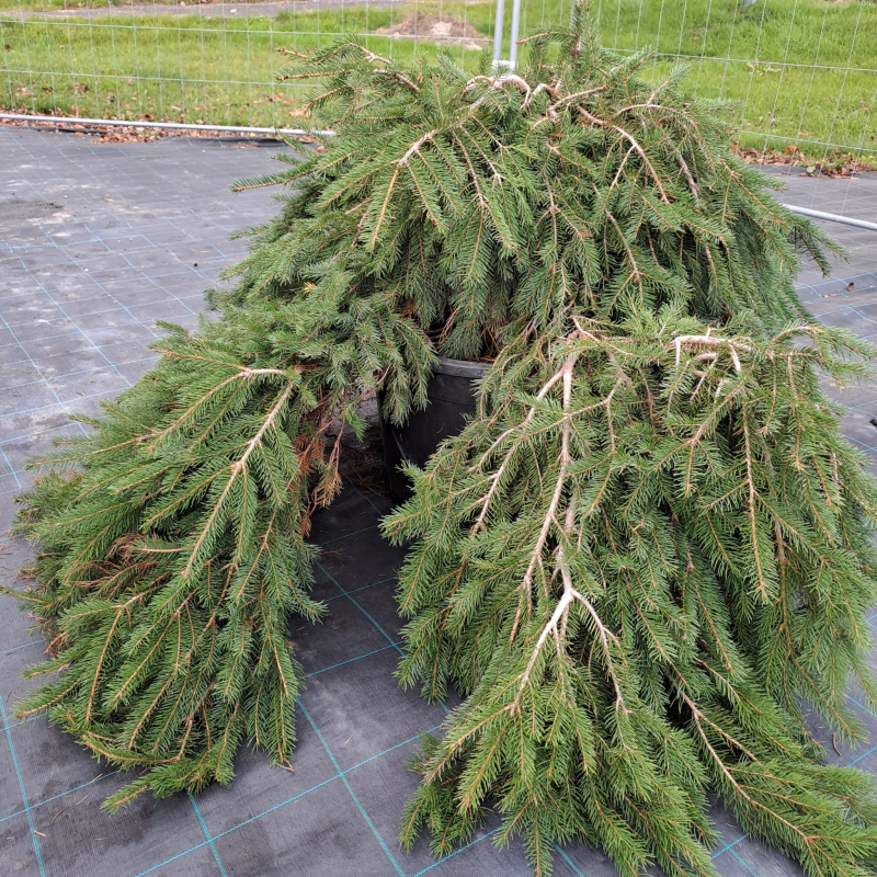 Výnimočná odroda previslého smreku. Farbu ihličia má zelenú a šišky sú fialové. Vyžaduje vzdušnú pôdu a slnečné stanovište.Vďačný kultivar aj do skaliek či záhonov kde bude stredobodom pozornosti.