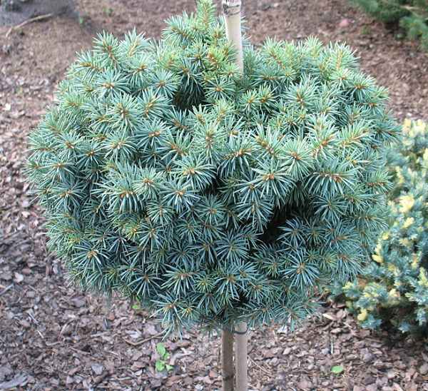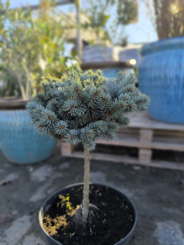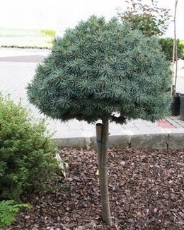 Pomaly rastúci smrek, zaujímavý svojím ihličím sfarbeným do modra.