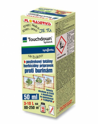 Postrekový neselektívny systémovo pôsobiaci herbicídny prípravok formulovaný na báze nového integrovaného a multifunkčného systému surfakantov „System 4 Technology“ určený na ničenie jednoročných a vytrvalých burín, vrátane pýru plazivého, v poľných kultúrach, sadoch, na nepoľnohospodárskej pôde a pri obnove lúk a pasienkov. Je totálny herbicíd so systémovým účinkom pôsobiacim proti širokému spektru jednoročných a vytrvalých burín, vrátane pýru plazivého, pichliača roľného a ďalších. Po aplikácii na list aktívne rastúcich burín je aktívna látka translokovaná do nadzemnej aj podzemnej časti rastlín. Pre zabezpečenie optimálneho účinku prípravku je jeho najvhodnejšia aplikácia proti vytrvalým burinám v štádiu pred alebo na začiatku kvitnutia. Na dosiahnutie dostatočnej translokácie prípravku do celej rastliny je potrebné zachovať po aplikácii kultivačný pokoj minimálne 7 dní. Tochdown systém 4 predstavuje formuláciu obsahujúcu technológiu „Sytem 4“ nový, integrovaný multifunkčný systém patentovaný spoločnosťou Syngenta, umožňujúci dosiahnuť vynikajúce herbicídne účinky. Obsahuje nový neiónový surfakant (APG), ktorý zlepšuje kontakt prípravku z povrchom buriny a napomáha účinnej látke rýchlejšie sa presúvať do rastových vrcholov buriny. Naviac surfakant má vynikajúce ekotoxikologické parametre. Umožňuje dokonale pokryť aj povrch niektorých ťažko zmáčateľných burín. Je rýchlejšie absorbovaný cez pokožku buriny a tým sa jeho odolnosť voči dažďovým zrážkam výrazne zvyšuje. Je rýchlejšie translokovaný vo vodivých pletivách burín a rýchlejšie sa dostane na miesto účinku. Pri aplikácii Tochdownu Systém 4 nie je koncentrácia 1% postrekovej kvapaliny limitujúcim faktorom.