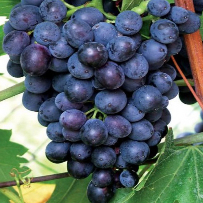 Bobule tvorí stredne veľké, tmavomodré a oválne.
